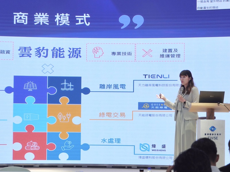 ▲雲豹能源總經理趙書閔受邀參加「創新板主題業績發表會」,分享綠能界波克夏營運模式與競爭優勢。