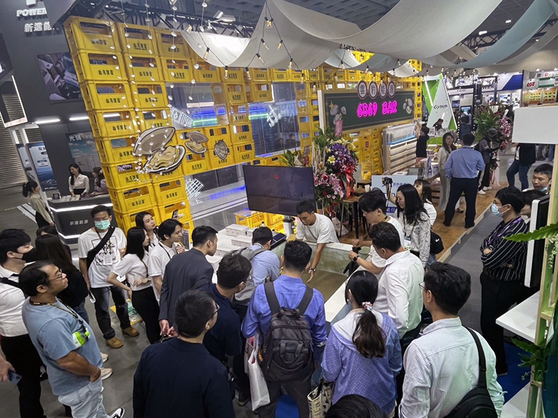 今年能源週,雲豹能源以「打造低碳永續家園」為宗旨,完整呈現團隊投入漁電共生開發、建造、並成功養殖收成的實績。以全台最大128MW漁電共生場域為原型,在攤位中營造純樸的漁村風,配合文蛤殼、天然織布、木棧板等增加南部在地風情,更將漁電共生場域採收之文蛤,每日產地直送,提供民眾藉由摸蛤仔尋寶活動,認識漁電共生永續經營型態。