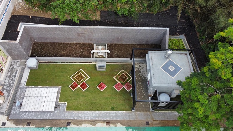 ▲羅浮水資中心為地下化污水處理廠,並於上部景觀設有融入原住民圖騰的景觀花園,每日可處理生活污水量350噸。