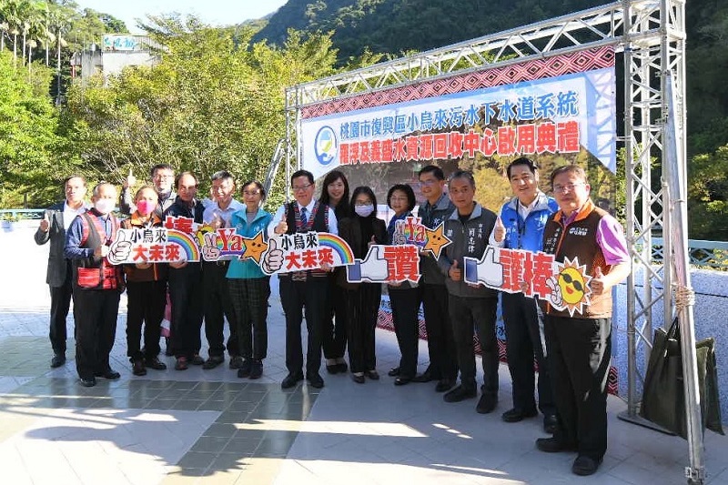▲桃園市復興區小烏來風景特定區污水下水道系統工程啟用典禮,桃園市長鄭文燦(中)與煒盛廢水處理公司董事長張家豪(左一)等貴賓一同參與盛會。