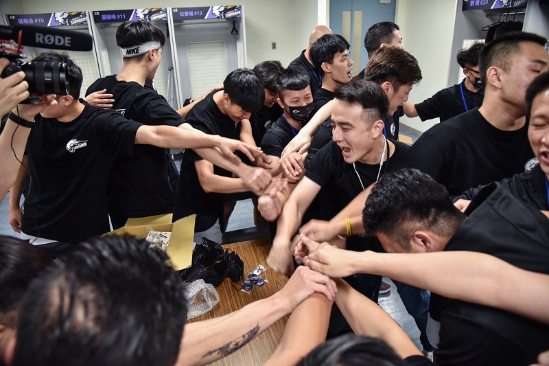 ▲雲豹能源發言人、同時也是桃園雲豹隊執行長張建偉於開賽前現身後台,集合全隊選手信心喊話。