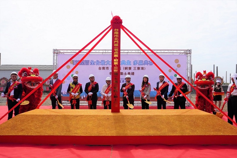 此案場位於台南市沿海地區170公頃魚塭,11月開始動工,預計2022年年底完工併網發電,裝置容量將達123.08MW,創下業界之最!屆時平均年電量將達1.8億度,可供應超過5萬戶家庭1年所需用電,預估每年減少碳排放量達9.5萬公噸目標,等同於243.6座大安森林公園的碳吸附量。其中,10MW電力已由Google認購,成為Google在亞洲購買第一度綠電的場域,也是台灣第一張「再生能源購電協議」,一舉寫下業界兩大新紀錄。