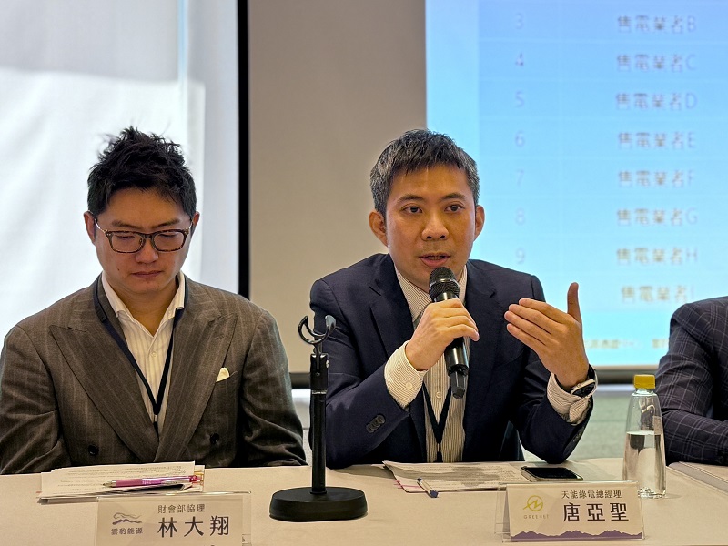 ▲2024年雲豹能源集團賣給台電的再生能源光電金額僅6,794萬元,占全年營收的1.79%,且94%的售電收入來自民間企業,期盼外界正視其業務實況。圖為雲豹能源售電業子公司天能綠電總經理唐亞聖(中)。