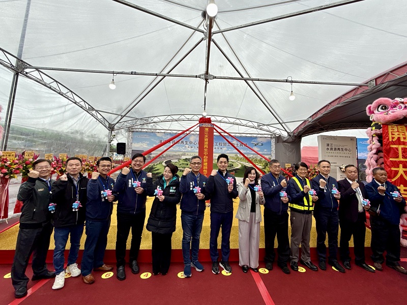 ▲雲豹能源旗下專注水處理領域的子公司煒盛環科主導統包的「濱江水資源再生中心」正式動土開工,由市長蔣萬安(中)主持,煒盛環科董事長張家豪(右二)以及多位產官界代表共同進行動土儀式。