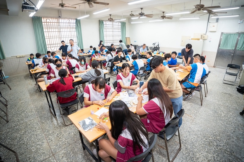 此外,科學營的手作課程熱鬧又充滿創意!雲豹能源團隊與學生們舉辦「太陽能皮卡車競速PK賽」,大家分組設計、組裝並改裝皮卡車,調整角度、強化電路,只為讓愛車在陽光下跑得更快、奪得冠軍。透過不斷測試與挑戰,學生們不僅掌握太陽能轉換電能的原理,也在競賽中體驗科學的樂趣與成就感。