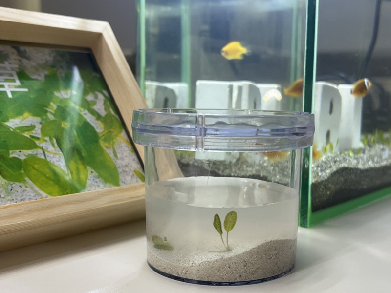 《還海行動》的海草復育計畫也與台大漁科所合作,教導企業製作海草生態瓶。手掌大小的生態瓶,只需每天在辦公桌上接受約4小時日照,一個月後便會長出新枝枒,成為海草復育的幼苗。